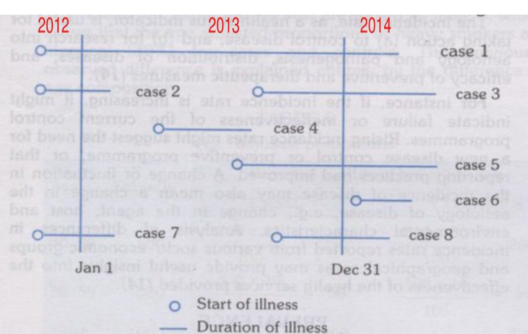 1. List case numbers falling in point prevalence on Jan 1 (0.5)